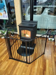 T自動車様 の店舗とご自宅の両方にペレットストーブ P68(HARMAN)を設置。